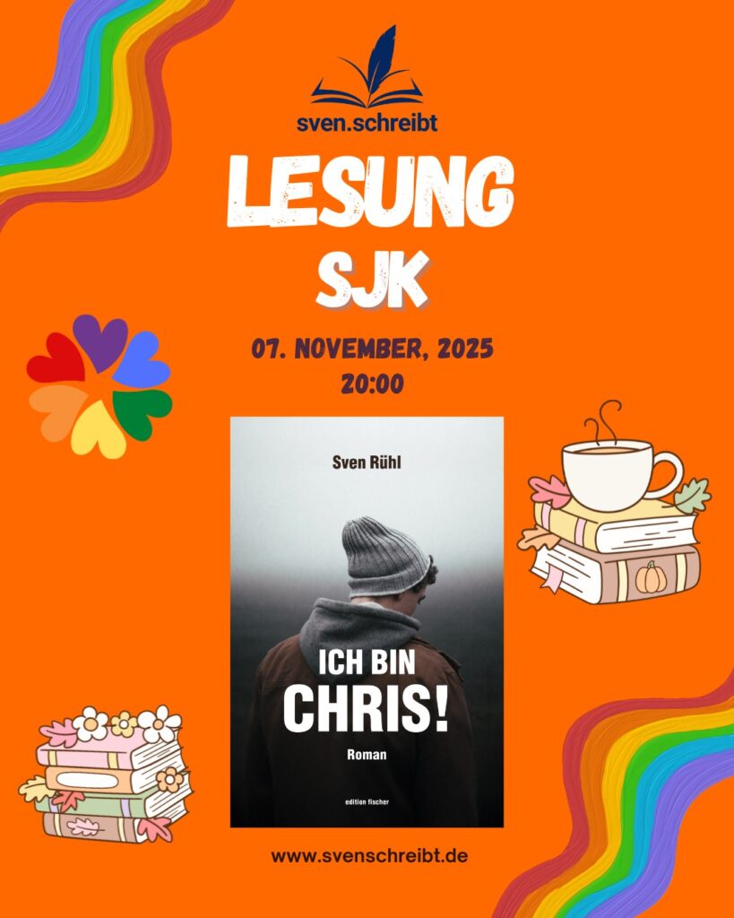 Am Freitag, den 07.11.2025 kommt Sven Rühl, der Autor des Buches „Ich bin Chris“, zu uns in die SJK. Beginn ist um 20:00 Uhr, die SJK öffnet regulär um 19.30 Uhr.